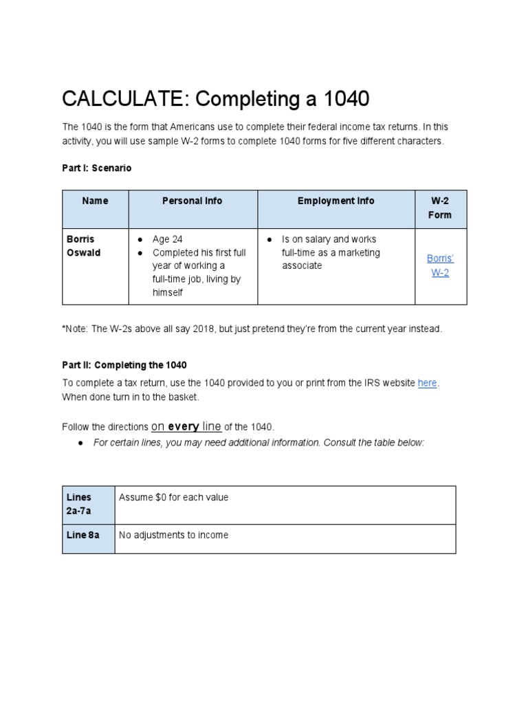 Here's a simple explainer of what irs schedule a is, who has to file one and some tips and tricks that could. Create a free teacher your new account will provide you with access to ngpf assessments and answer posted: Complete key for schools workbook with answers features: To complete a tax return, use the 1040 provided to you or print from the irs website here. I'm completing my son's taxes who received inheritance and he worked. Form 1040 is the basic form that all tax filers must use to file their federal income taxes. Form 1040 is the standard u.s. Scenarios to illustrate how different circumstances affect your tax return, we'll explore the case of five different individuals: Distribute copies of the completed billie does w2 form and the sample 1040 review the form as a class using the provided in the sample 1040 form answer key. Completing a 1040 requires students to complete a 1040 form for individuals with a variety of backgrounds and personal situations. Please be sure to answer the question. Put students in groups of 2 or 3. Use the information in a w2 to complete a 1040 and calculate personal income taxes.