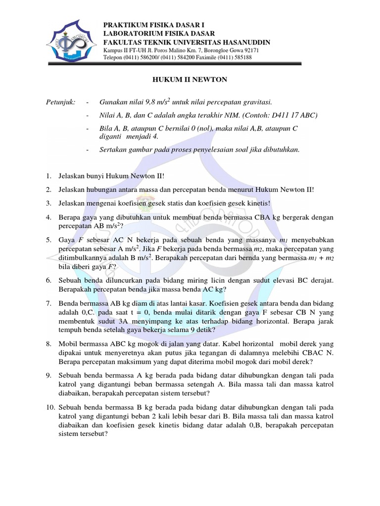 Artikel ini adalah jawaban dari surat pembaca yang dikirim kepada r. Lab fisika dasar, 5×3 jam (tiap 2 pekan). Soal fisika dasar untuk konsentrasi teknik1. 1 kali per semester (prototype rbl). Semua bisa diusahakan asal ada kehendak.